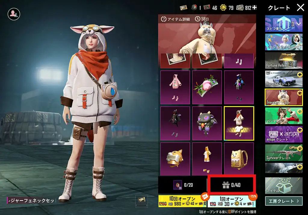 新しいトラベラーガチャになりました。「トレジャーフェネックセットが欲しい!」と思ってよく見ると、40回トラベラーガチャをまわすと、