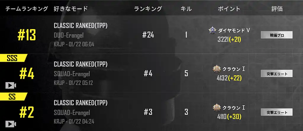 1マッチ目は何もできずにやられてしまいましたが、2マッチでレートプラス64。しかも3戦目はドン勝。まだプレイする時間はありますが、最近ドン勝した後は微妙なマッチが多いです。