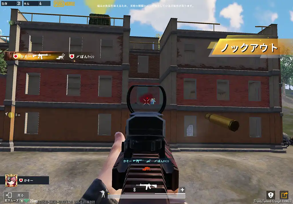 1人でガンガン戦えるような強さはないので、今回は生存を重視することにしました。残り27人のこの時点でもまだアバカン。しかも5ミリは32発しかありません。